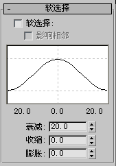 点和 CV 子对象的软选择卷展栏包含此功能的控件。默认情况下,“软选择”复选框处于禁用状态。