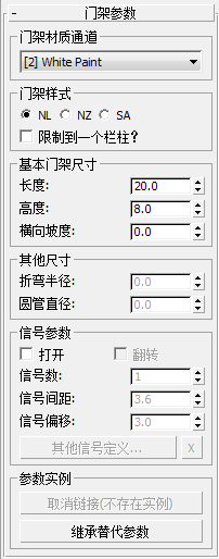 - 默认情况下,Civil View 参数化门架使用 CivilViewObjects 材质。通过此列表,可以选择此材质内应用于表示门架对象(不包括标志、信号、地基等)的主框架表面的材质通道。