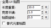 设置选定材质沿元素重复的距离。默认值为 10.0 世界单位。