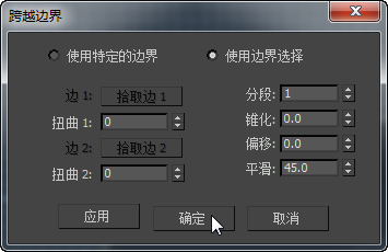 依次单击每个“拾取”按钮,然后在视口中单击多边形或边界边。在“边界”子对象层级,单击边界上的任何边来为桥接指定整个边界。同时,在每个边界上拾取的边也会直接相连,而剩下的边按照连续顺序相连接。可以将边的顺序更改为与“扭曲”设置一致。只有在“使用特定”模式下才可以使用该选项。