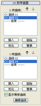 使用这些按钮来改变在 U 曲线和 V 曲线中的曲线顺序。在列表中选中一条曲线,使用箭头来将选中对象上下移动。