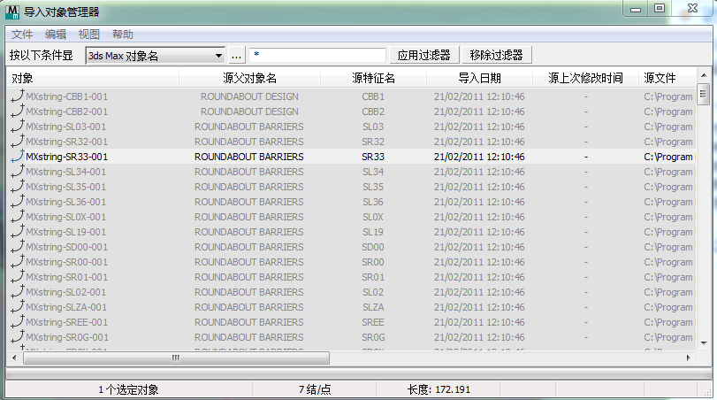 注: 对于从 MX 模型文件数据导出的对象,将显示源模型的上次修改日期而不是整个模型文件的上次修改日期。