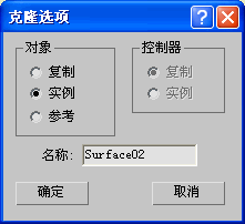 在您 Shift+克隆曲面或曲线子对象时,将打开“克隆选项”对话框,可以从中选择使克隆成为相关复制、独立复制或变换对象的选项。