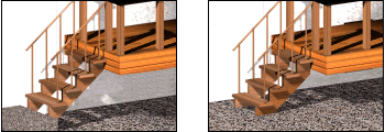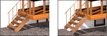 控制侧弦是从地面开始,还是与第一个梯级竖板的开始平齐,或是否侧弦延伸到地面以下。使用“偏移”选项可以控制侧弦延伸到地面以下的量。