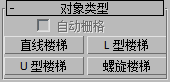 您可以在 3ds Max 中创建四种不同类型的楼梯:“螺旋楼梯”、“直线楼梯”、“L 型楼梯”或“U 型楼梯”。