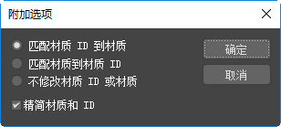 - 当需要保持原始材质 ID 指定时,可以使用第二个选项(“匹配材质到材质 ID”)。