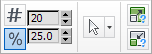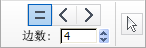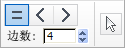 要使用,请单击 =、< 或 > 按钮,设置所需的连接边数(对于顶点)或边数(对于多边形)作为“边”或“边数”值,然后单击