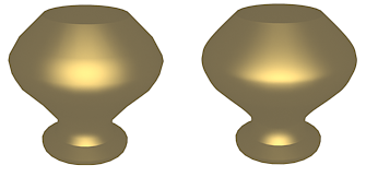上面的旋转对象中使用的样条线分别包含两个步长(左侧)和 20 个步长(右侧)。