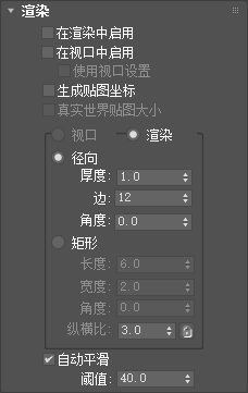 使用此处的控件可以启用和关闭形状的渲染性、指定其在渲染的场景中的厚度,并应用贴图坐标。可以在视口中查看样条线网格。您可以设置渲染参数的动画,例如边数。可以设置视口设置的动画。