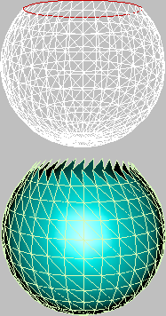 警告: 删除顶点和边时要谨慎。删除顶点和边的同时也删除了共享顶点和边的面片。例如,如果删除球体面片顶部的单个顶点,还会删除顶部的四个面片。
