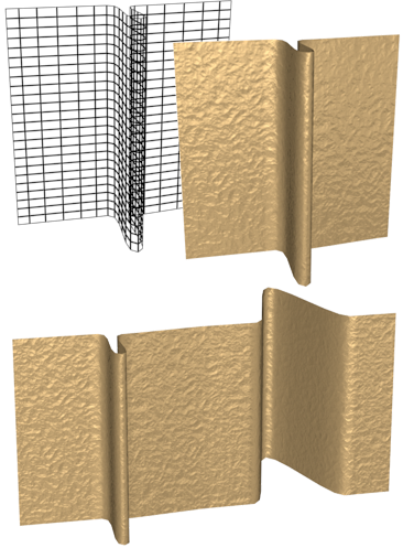新面片自适应现有几何体。例如,将面片添加到曲线边时,新面片跟随那条曲线并无缝地伸展它。