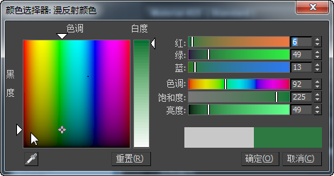 可以使用“颜色选择器”为灯光颜色、材质颜色、背景色和自定义对象颜色等指定各种颜色参数。(另一种选择对象视口颜色的方法是使用“对象颜色”对话框中的预定义颜色。)
