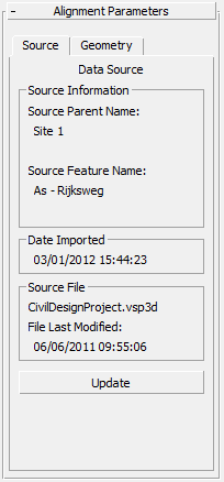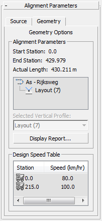 与路线起点和终点桩号值之间的差异相比,此值可能会略有不同。这是因为桩号值是导出到 Civil View 之前在源设计应用程序中计算并应用的,而路线的实际长度是在 3ds Max 中测量的。