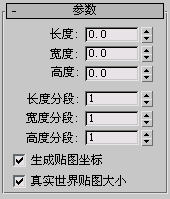 设置长方体对象的长度、宽度和高度。在拖动长方体的侧面时,这些字段也作为读数。默认值为 0,0,0。