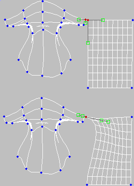 另外,还可以移动和旋转向量控制柄,从而影响与顶点连接的所有面片的形状。