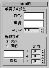使用这些控件,可以分配颜色、照明颜色(着色)和选定顶点的 alpha(透明)值。