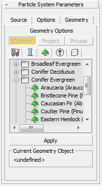 若要将对象指定给粒子系统,请将该对象在列表中高亮显示,然后单击“应用”按钮。