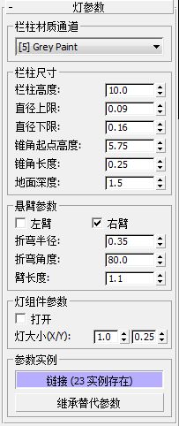 - 设置灯柱臂末端处的灯组件的宽度和长度。