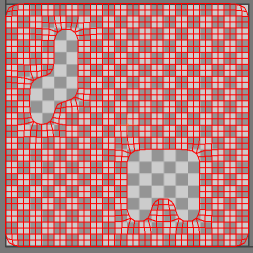 - 控制如何将平滑应用于边界 UV。下图显示前面的网格已在“UVW 展开”修改器编辑器中进行平滑。