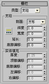 控制支柱的剖面、深度和宽度以及其间的间隔。使用“支柱间隔”按钮,可以指定所需的支柱数。只有将“类型”设置为“支柱”时,才能使用该选项。
