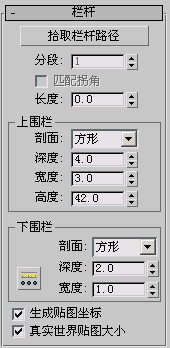 设置上栏杆的高度。创建时,可以使用视口中的鼠标光标将上栏杆拖动至所需的高度。或者,可以通过键盘或使用微调器输入所需的高度。