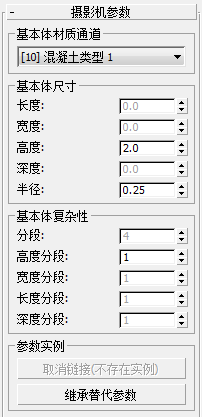 这些控件更改沿基本体对象尺寸的分段数。禁用与选定对象类型无关的所有微调器控件。