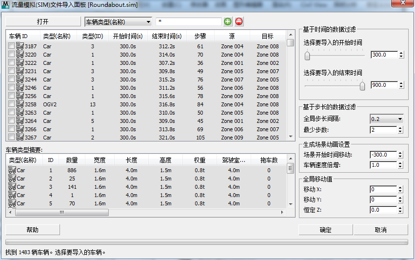 设定 XY 偏移,以应用于从 SIM 文件中导入的所有交通动画数据。