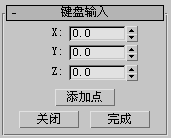 使用“键盘输入”卷展栏可以通过输入创建 NURBS 曲线。使用 Tab 键可以在卷展栏上的控件之间移动。要单击键盘按钮,请在按钮处于活动状态时按下 Enter 键。