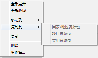 在此列表中的条目上单击鼠标右键可删除或重命名对象,或将对象移动或复制到其他资源工具包中。右键单击菜单还可以管理列表本身。