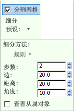 指定用于细分可编辑多边形对象的曲面近似设置。这些控件的工作方式与 NURBS 曲面的曲面近似设置相同。对可编辑多边形对象应用置换贴图时会使用这些控件。