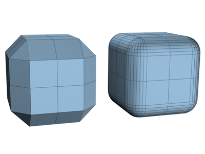 混合切角长方体的面的显示,从而在渲染视图中创建平滑的外观。