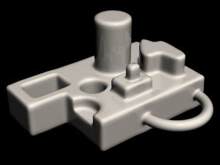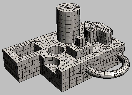 要改变单个四边形的大小,请调整“四边形大小 %”参数。通常情况下,1% 与 4% 之间的一个值就可以获得需要的效果。四边形大小越小,在平滑网格时,所得到的曲面之间的圆角或混合就会越小。默认的“四边形大小”值为 3.0%。2.0% 的“四边形大小”值将产生以下效果: