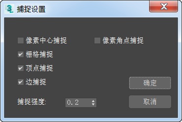 将强度设置为 0 可有效地禁用捕捉。当值低于 0.3 时,栅格捕捉趋向栅格边缘。将强度设置为 0.5 时,栅格捕捉只能捕捉到栅格交点。