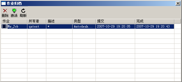 使用“作业存档”对话框来删除、激活和刷新已存档的作业。