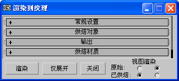 渲染到纹理或“纹理烘焙”由该对话框控制。该对话框的大多数控件包含在其卷展栏中。