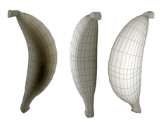 新壳材质包含香蕉的原始材质(左下方)和烘焙纹理(右下方)。