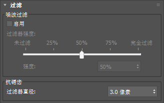 “过滤”卷展栏包含的设置可用于控制 ART 渲染器的噪波和抗锯齿。