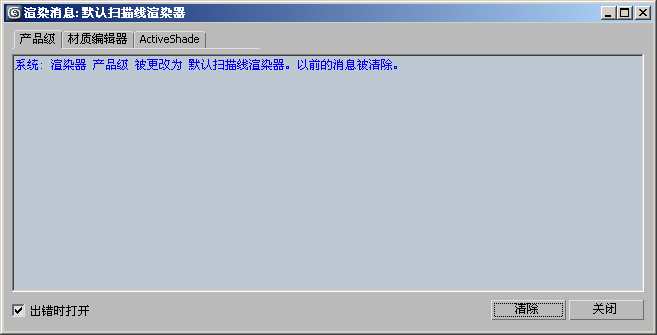 渲染消息窗口显示某些渲染器(虽然不是默认扫描线渲染器)的错误消息和其他消息。