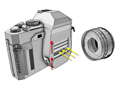 如果叶片缓慢移动,狭缝打开较大,会有更多的光进入。这对于暗环境或运动不多的环境非常有用。(快门速度设置过低时,诸如飞驰而过的汽车等快速移动的对象会变得模糊。)