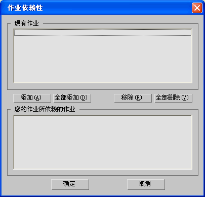 此对话框用于指定在其他作业完成之前未开始进行渲染的作业。使用两个列表和“添加和删除”按钮可以构建在当前作业开始之前必须完成渲染的作业列表。