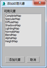 此对话框用于选择哪些元素是烘焙材质的一部分。每个元素都是单独的位图。在着色视口中显示烘焙纹理时,一些元素可能不显示。