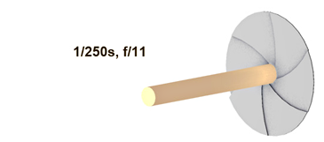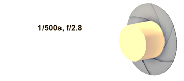 下图说明了通过设置为光圈开口 f11 的镜头的灯光量。在图 A 中,快门速度很快,只有少量灯光通过。在图 B 中,快门速度较慢,有更多灯光通过。