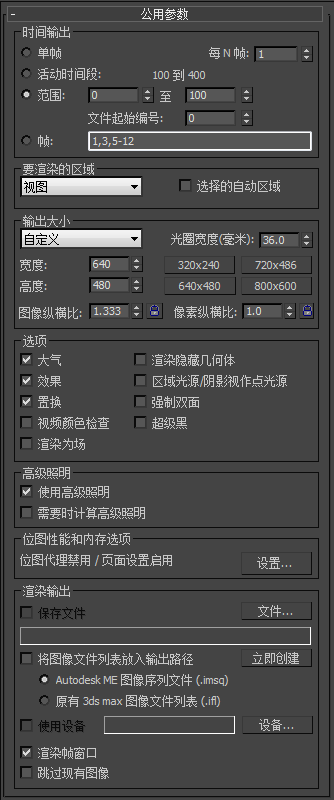 “公用参数”卷展栏用来设置所有渲染器的公用参数。