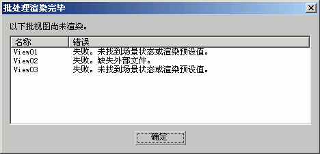 此对话框将通知您哪些批处理渲染未完成。如果可能,它将会提供故障原因的描述。