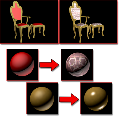 右上图:将布料的材质更改为贴图材质并增加木材材质的高光效果之后