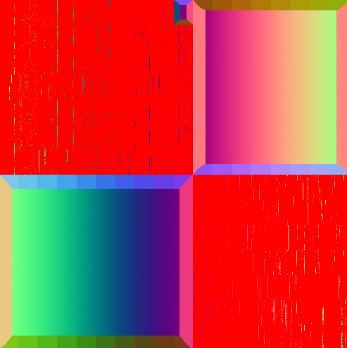 使用水平翻转更正的法线凹凸贴图。红色和蓝色的分布更均匀,蓝色占优势。
