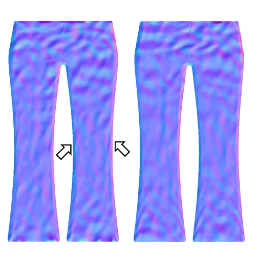 例如,在下列场景中,裤子上出现不连续性。如箭头所示,它们相对于彼此翻转。