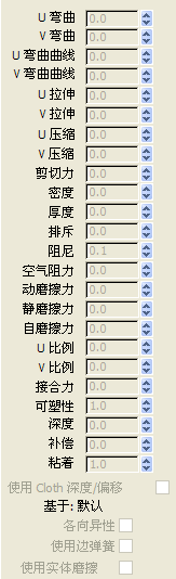 这些“属性”控件与布料的“对象属性”对话框的“布料属性”组中的控件相同。