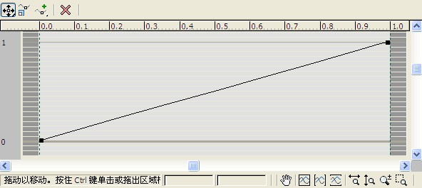 “径向密度”对话框顶部的控件用于在下面图形的曲线上创建和移动点。该曲线代表应用于镜头效果的其他效果的密度。如果打开该对话框,您会注意到,其中已包含一条两端各有一个点的直线,表示效果的密度。默认的衰减从效果中心的密度值 1 开始向外边界的值 0 衰减。这样可以产生在效果中心渲染的密度较大、在边界密度逐渐衰减到零的效果。通过沿曲线放置点,可以通过拖动这些点,增大或减小其他效果的密度,或在某些区域中完全删除。