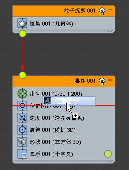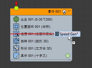 14. 将“速度 Gen”操作符拖动到“事件 001”中的默认“速度”操作符之上。